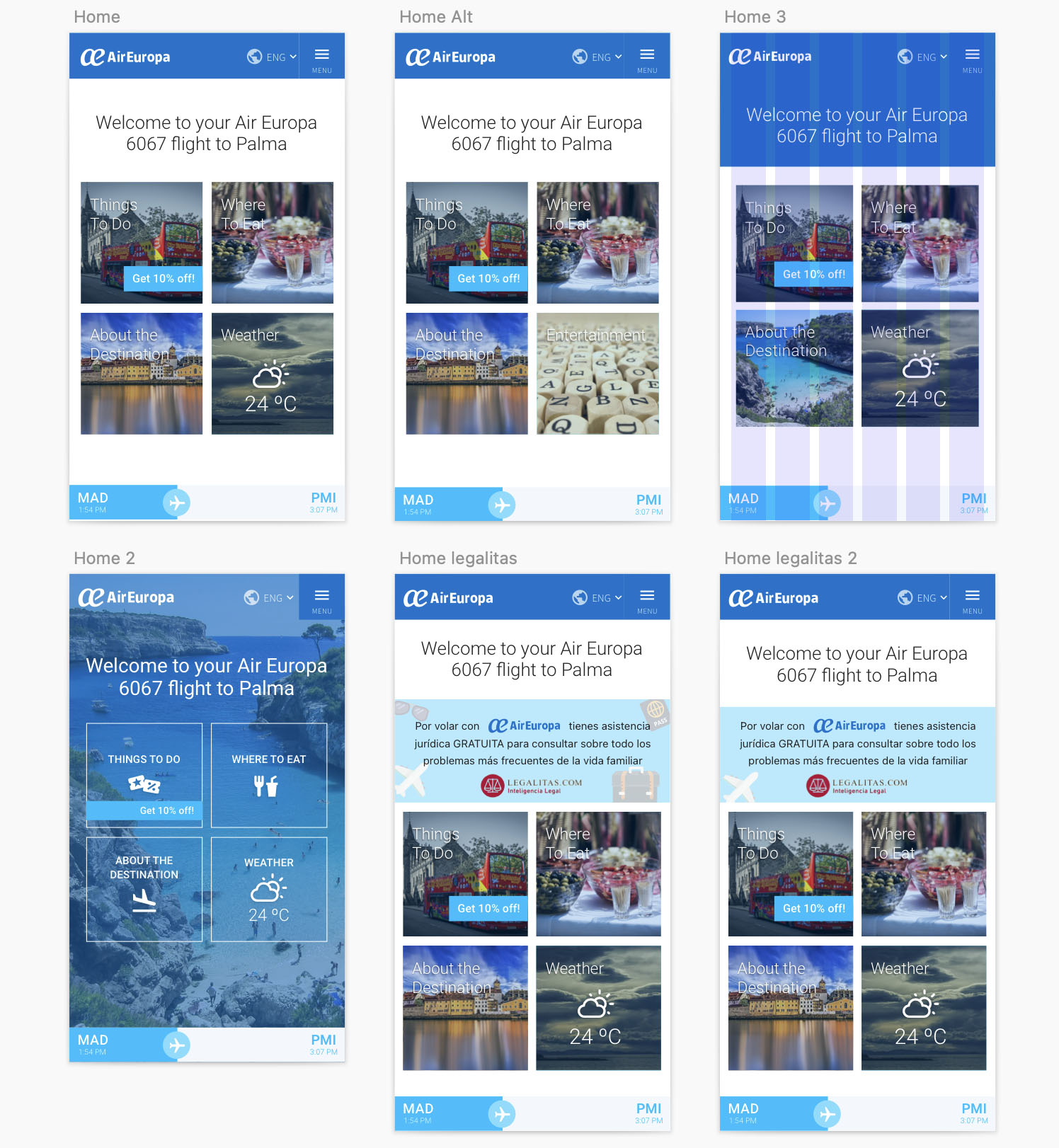 For some parts of the in-flight portal we went into the details, such as tinting the weather images to keep the blue branding tones. Not sure which one was locked-in in the end.